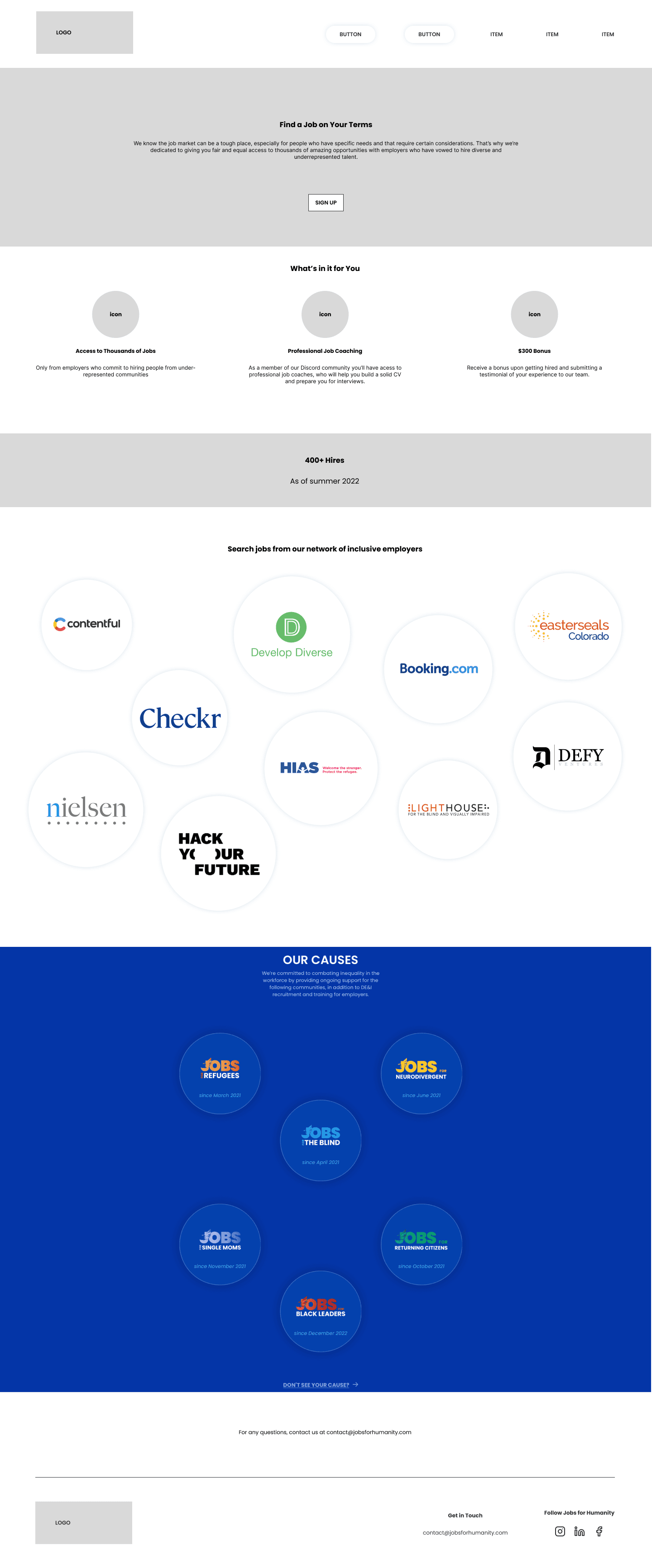 Jobs for Humanity is a nonprofit dedicated to expanding access to meaningful employment for underrepresented communities. During my internship, I focused on creating scalable design systems and content tools that enabled the organization to communicate more clearly, consistently, and accessibly—despite limited resources and a volunteer-driven team.